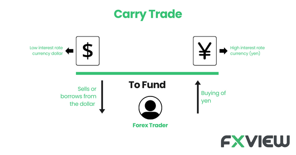 In forex, a carry trade happens when a trader borrows money in a currency with low interest and invests it in a currency with higher interest. The trader then may profit from the difference between the two rates.