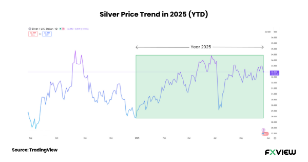 - Technical Breakouts: As of May 26, 2025, silver (XAG/USD) is trading around $33.50 per ounce, having recently tested resistance at $33.699. Technical indicators suggest a bullish trend, with potential targets at $34.166 and $34.948 if momentum builds. This could mark the next phase of the silver breakout rally.