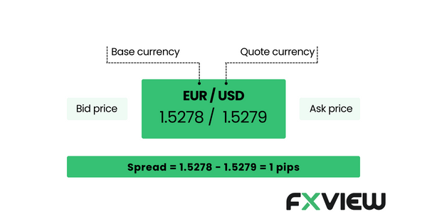 For example, if the bid price for the EUR/USD currency pair is 1.5278 and the ask price is 1.5279, the spread is 1 pip. Unsure about what pips are? Pips refer to the smallest unit of measurement in forex trading and are usually equal to 0.0001 of a currency unit. In this example, the spread is 1 pip or 0.0001 of a currency unit.