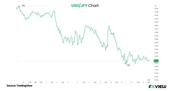 USD/JPY Pair: The USD/JPY chart shows a bearish move below 143, with support at 142 and resistance at 152. The dollar is still weak due to the recent threats of tariff imposition from the US and the uncertainty about US policy, which have shaken confidence in US economic stability.