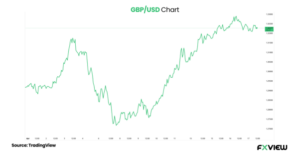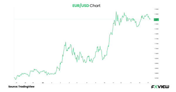 EUR/USD Pair: The EUR/USD is currently trading at 1.13, slightly low but still near a four-week high as USD continues to feel downward pressure from tariff-related uncertainty.